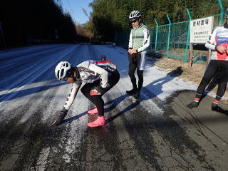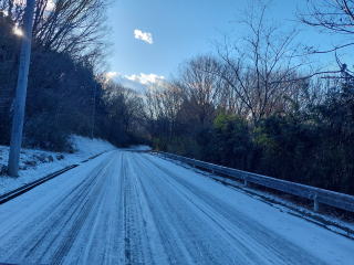 のハズが2日に降った雪の影響なのか日陰は路面凍結。