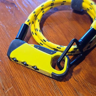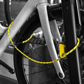 前後ホイールまで届く全長1000mm、アウトドアロープのような手ざわりのケーブルは、フレームへの傷つきを大幅に軽減!手のひらサイズまで畳めるほど柔軟性が高いのに、内側に太さ2mmのスチールケーブルが入っており、愛車をガッチリ守ります☆