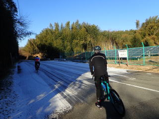 のハズが2日に降った雪の影響なのか日陰は路面凍結。